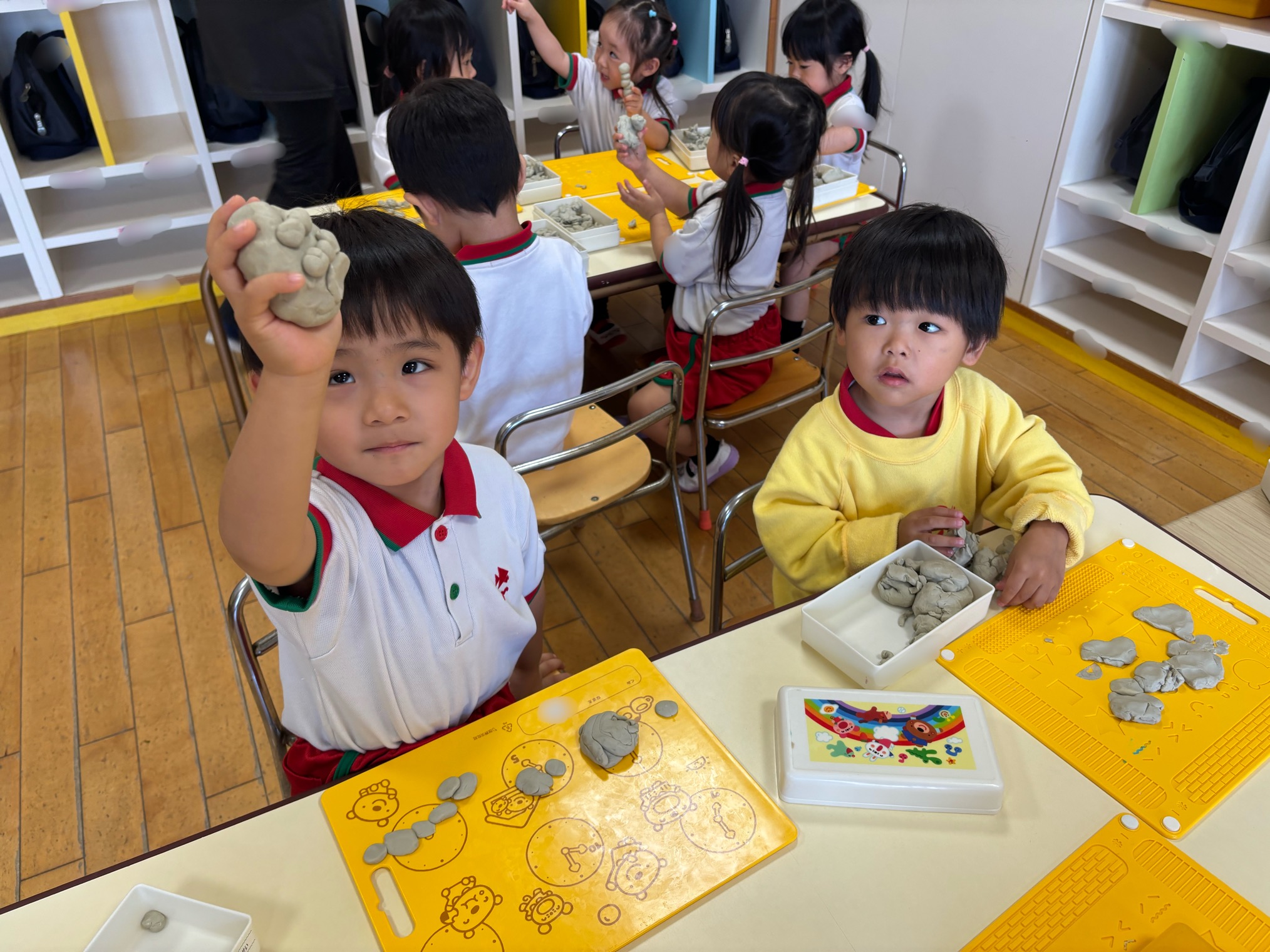 まるめたり、のばしたり、ちぎったり…指先を上手に使って夢中で楽しんでいます🌈