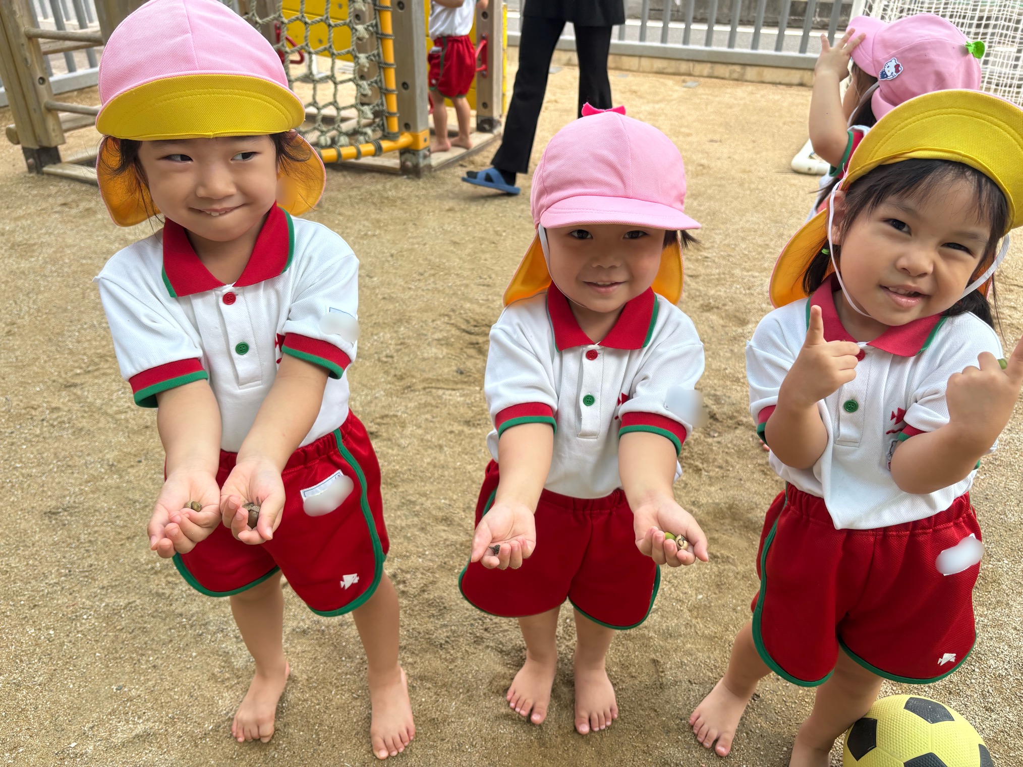 「どんぐりの帽子だけあったよ!」「おっきいどんぐり見つけた!」