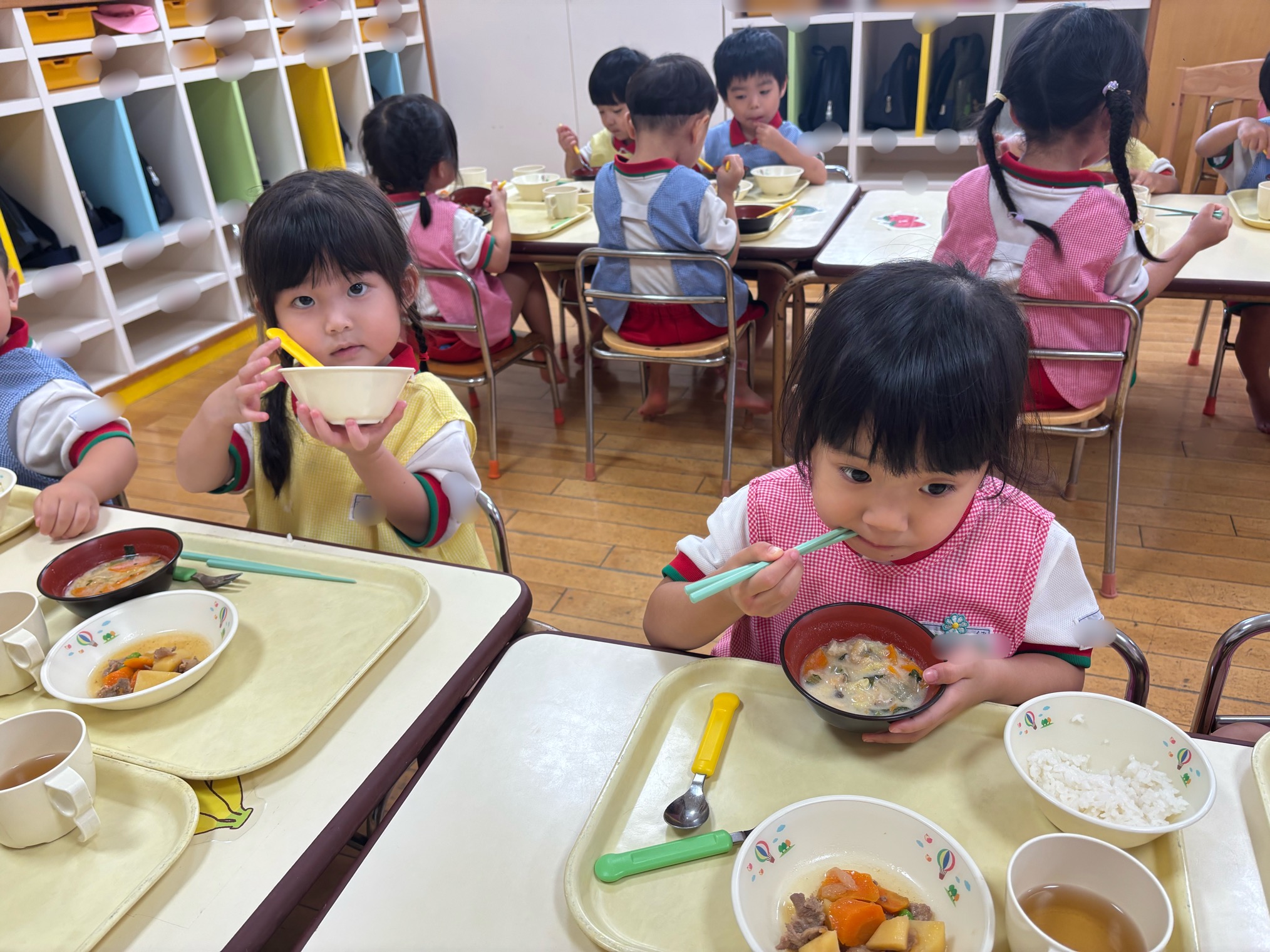 たくさん遊んだあとは、みんなお待ちかねの給食タイム🍴