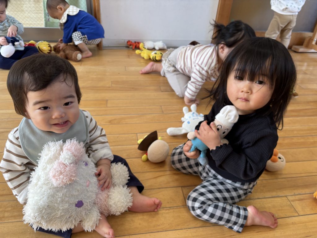 好きなぬいぐるみをギュッと抱いたり、 よしよしして遊んでいますね🧸