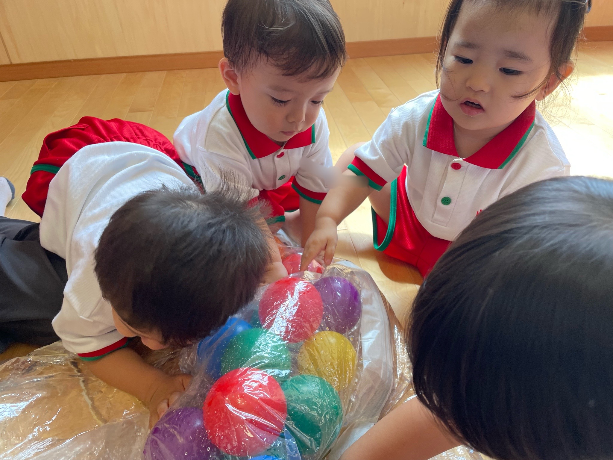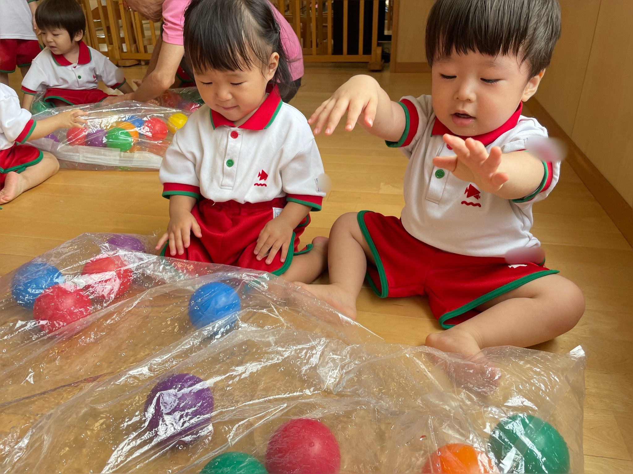 お部屋の中でも水の感触を楽しんだり、ぷかぷか浮かぶカラフルなボールを捕まえたり楽しそうな姿が沢山見られます!
