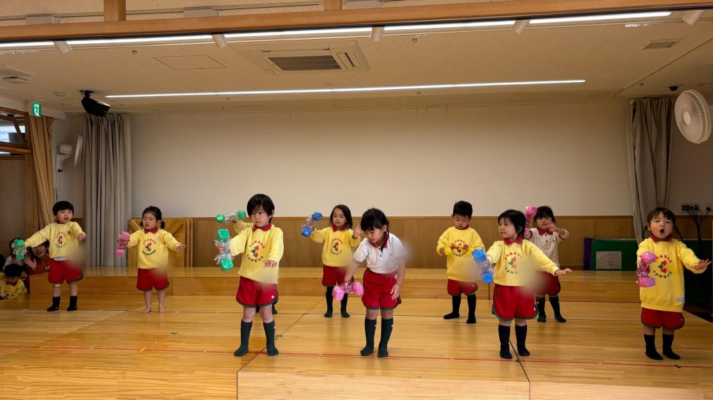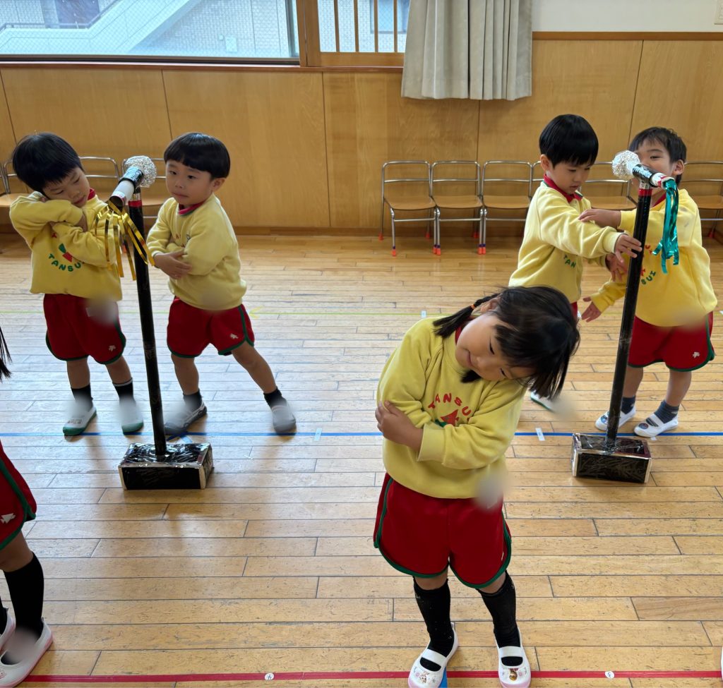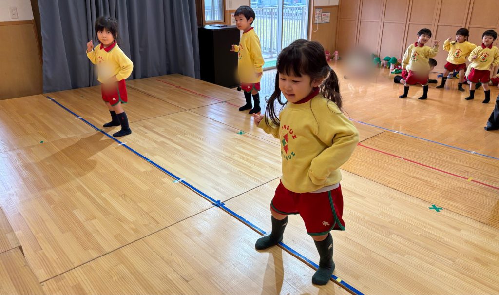 遊戯では、音楽が流れると自然と身体が動き出し、「もう一回!」と練習を楽しむ声も☺️