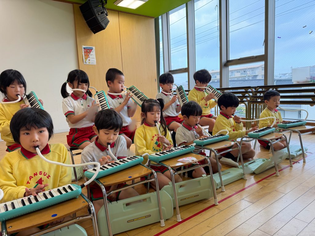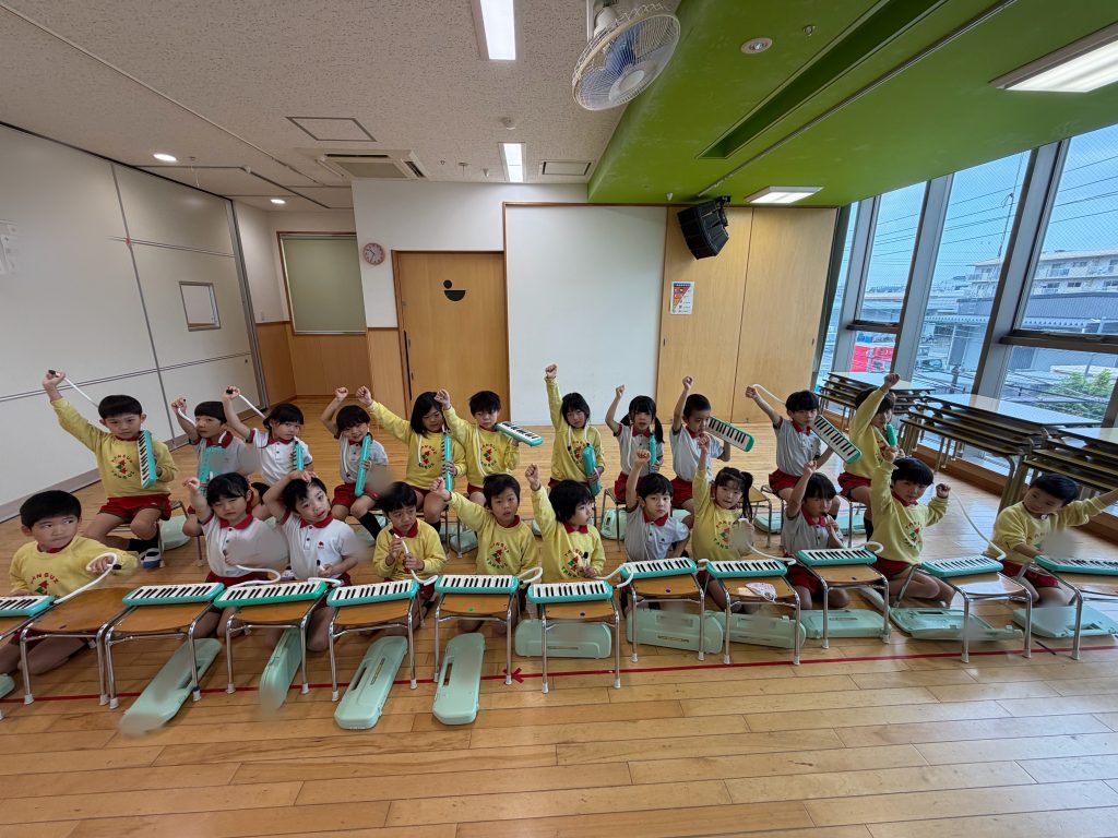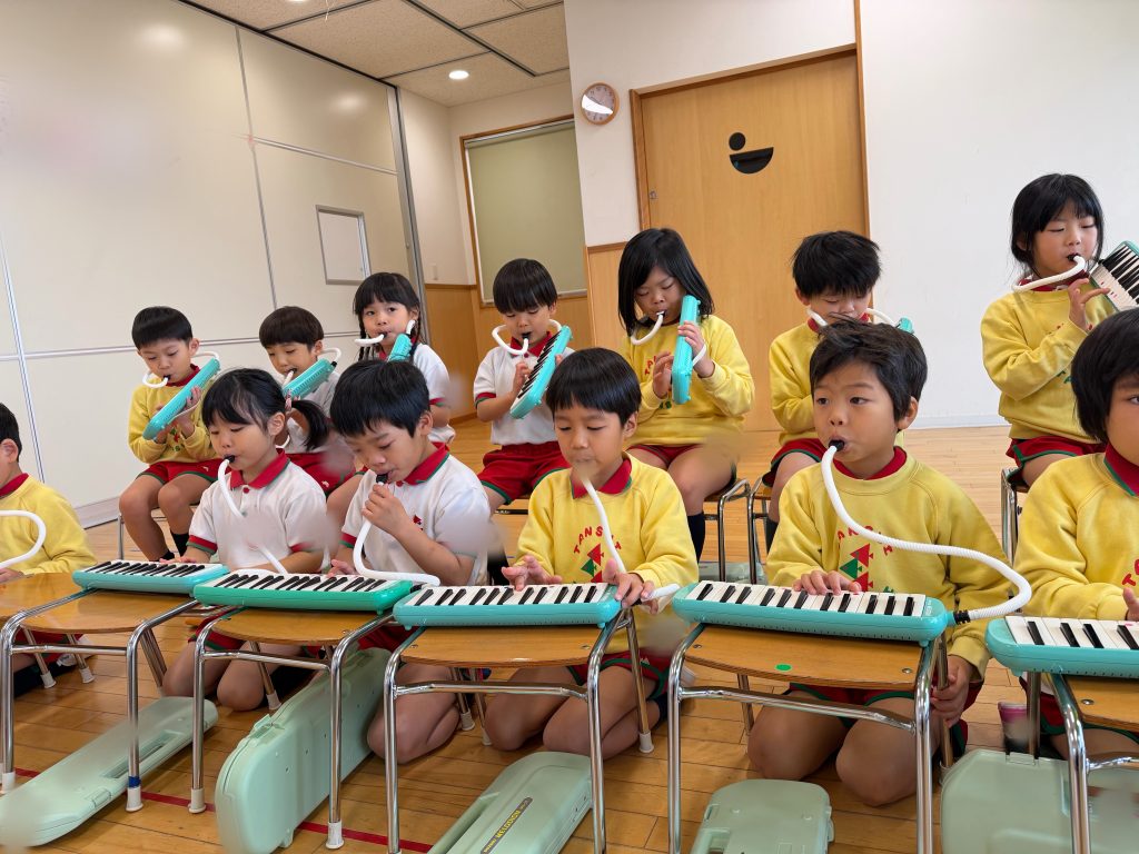 合奏ではやま組さんのカスタネットと合わせて鍵盤ハーモニカを使ってある曲に挑戦します🐭🖤