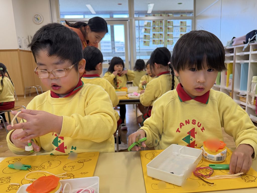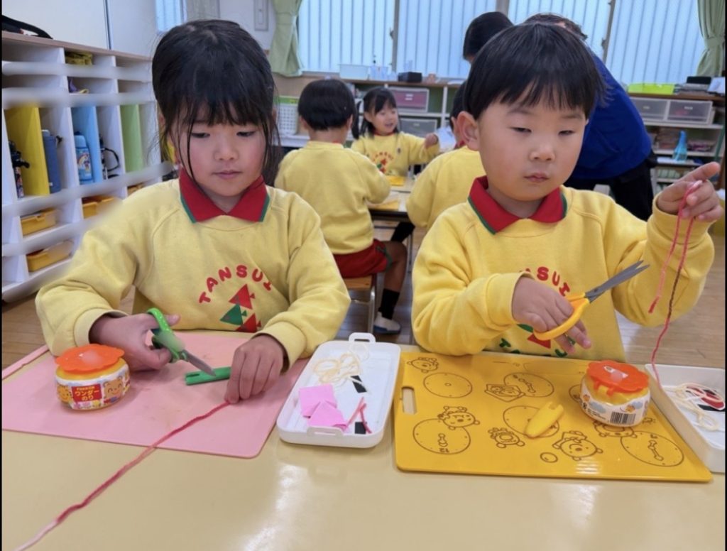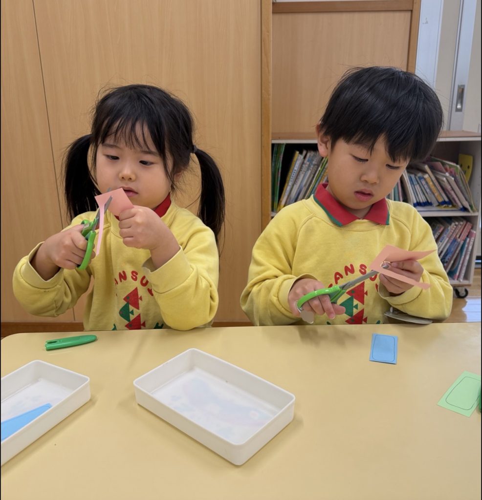 どの長さに切るか考え、全部同じ長さにしたり、バラバラの大きさにしたりと楽しんでいました✨️