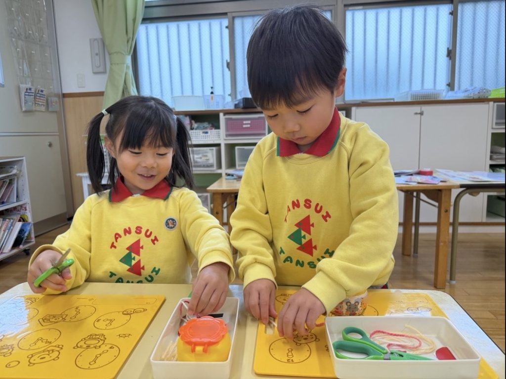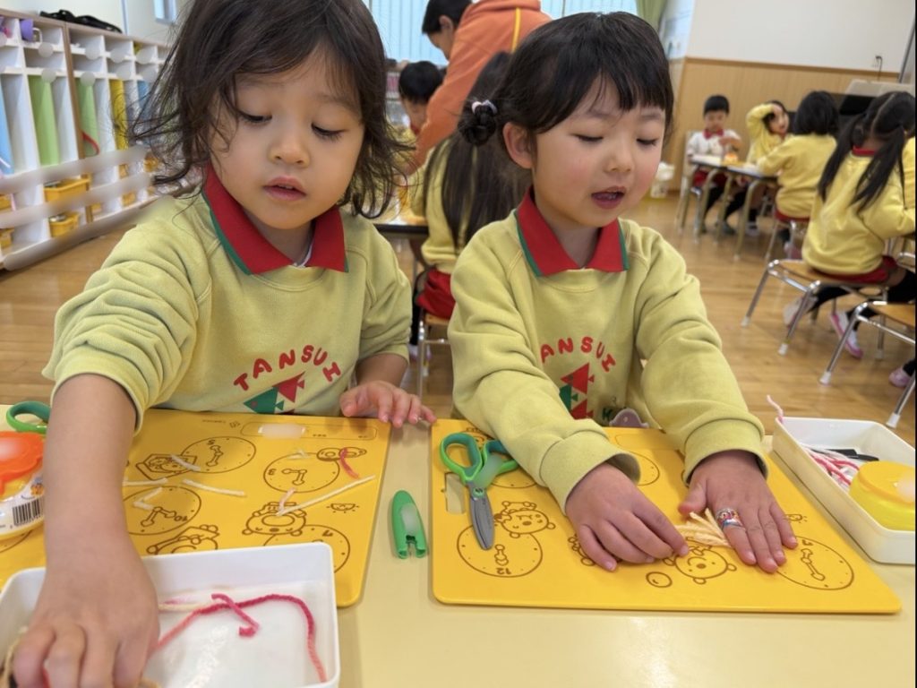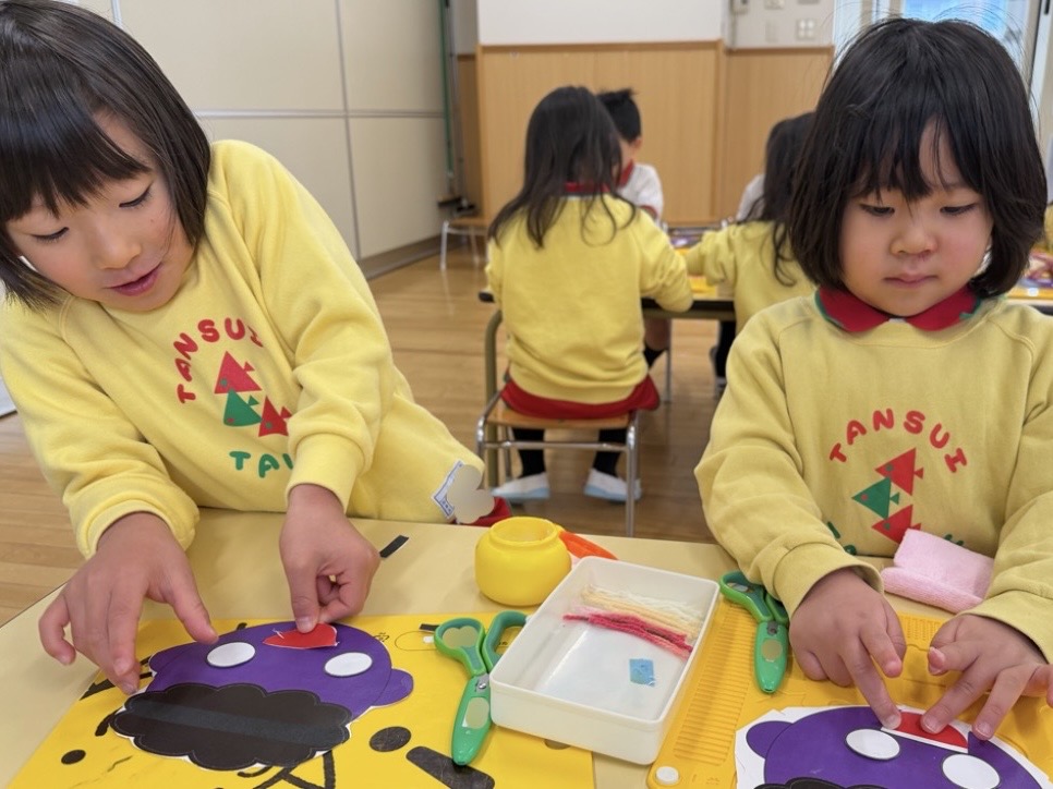 自分で鬼の髪型を決めれるということで、みんな丁寧に集中をして貼り付けつける姿が見られましたよ🙌