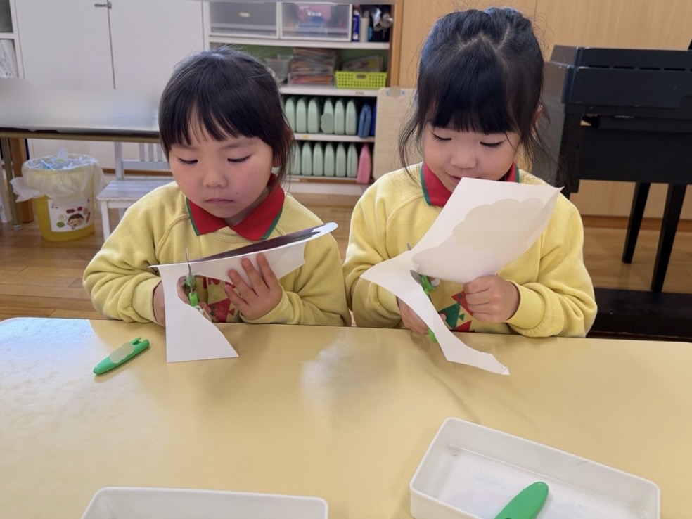 どんな風に貼るか周りのお友だちと話しながら楽しく活動に参加していましたよ♬