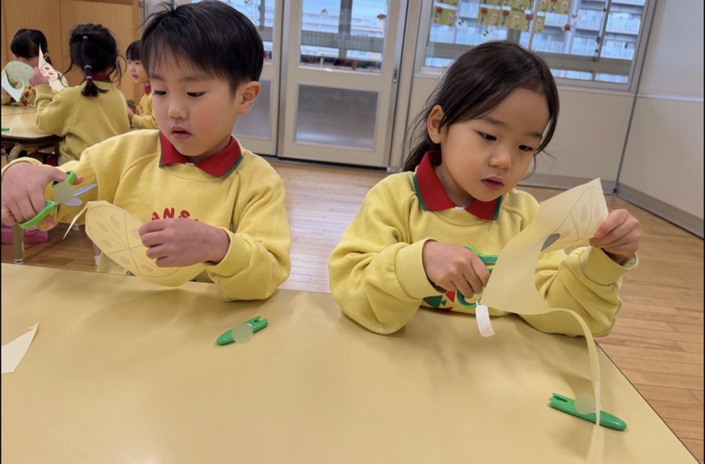 紙を上手に動かしながら、丸を丁寧に切ることが出来るように頑張っていますよ。